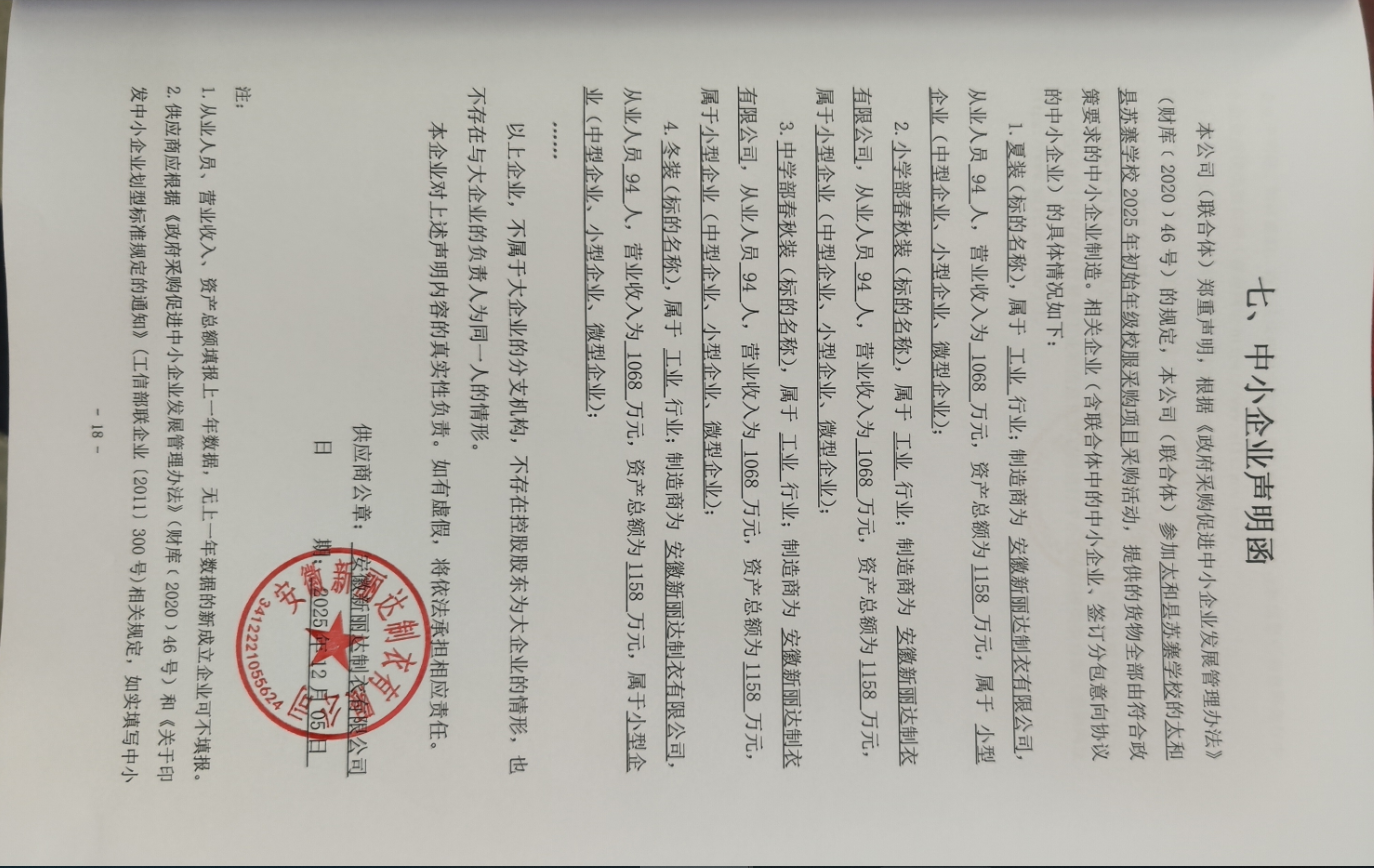 二、项目名称:太和县苏寨学校2025年初始年级校服采购项目
